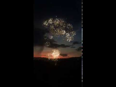 Bombas de efectos surtidos con disparos dorados y craqueantes.
